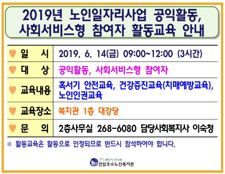 2019년 노인일자리사업 공익활동, 사회서비스형 참여자 활동교육 [2019-06-17]