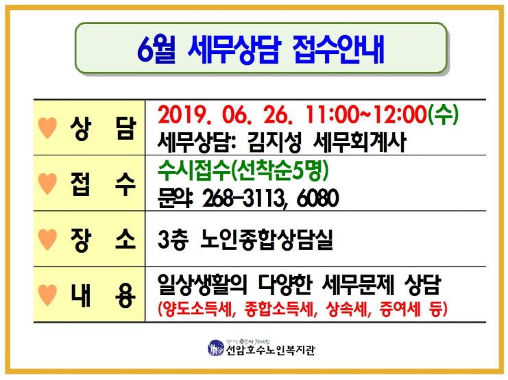 2019년 6월 세무상담 접수안내 [2019-06-24]