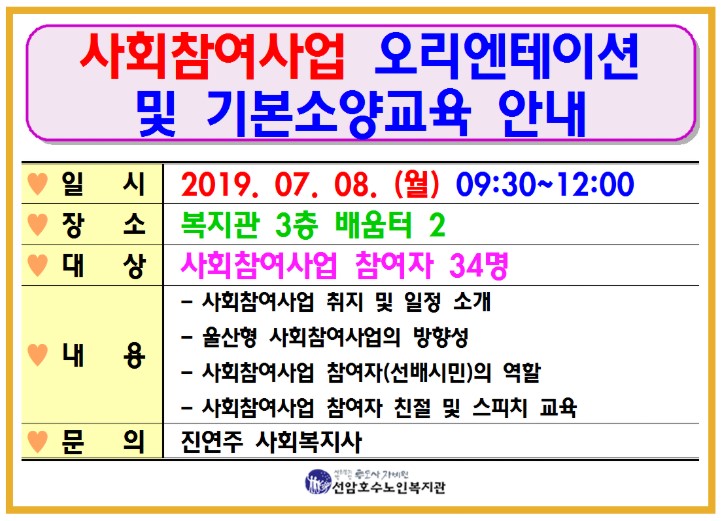 사회참여사업 오리엔테이션 및 기본소양교육 안내 [2019-07-01]