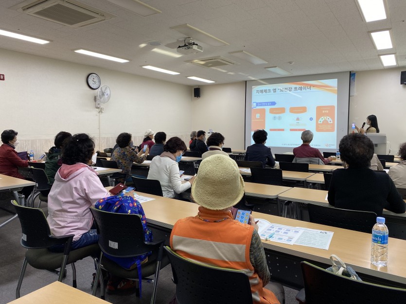 호수실버봉사단 중 조장 및 집행부, 안내, 부부봉사단, 동년배상담 활동 봉사자들을 대상으로 울산광역시 광역치매센터와 연계하여 봉사활동 전문성 향상 및 역량강화를 위해 치매체크 어플 활용교육을 진행하였습니다.