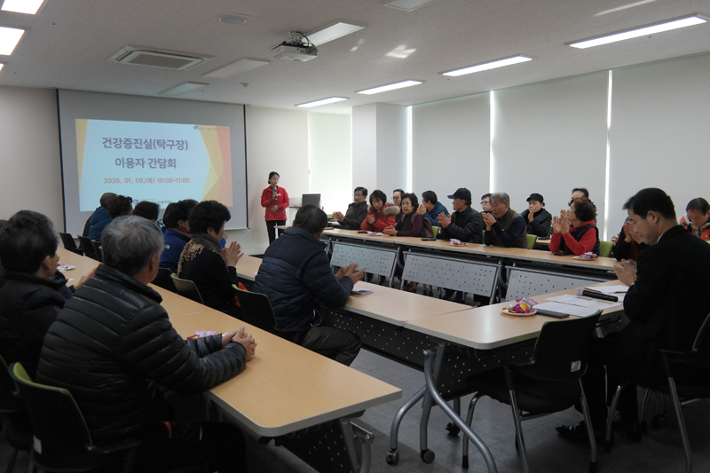 2020년 01월 09일(목) 복지관 3층 배움터2 강의실에서 '2020년 1월 자율이용시설 건강증진실(탁구장) 이용자 간담회'를 실시하였습니다.