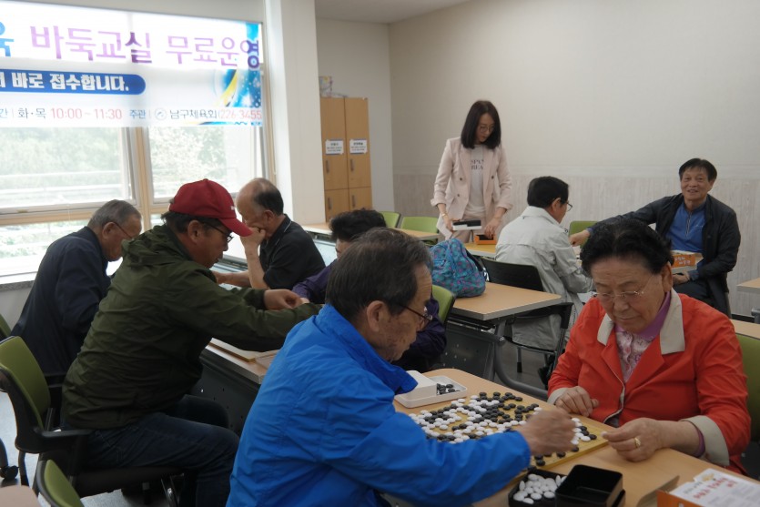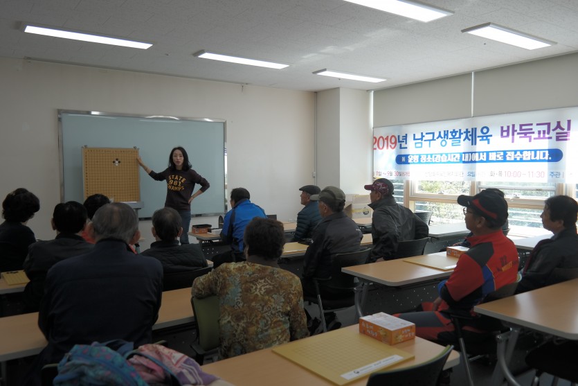 2019년 04월~ 10월 / 7개월간, 울산광역시남구체육회 지원 생활체육무료교실 연계로 자율이용시설P/G <2019년 바둑교실 입문반>을 진행하였습니다. 바둑교실 입문반은 매주 화, 목 09:30~11:30에 복지관 3층 배움터1 강의실에서 4~6월 1기 , 7~9월 2기로 진행되었습니다.