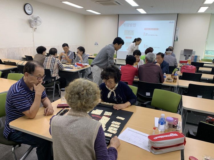 이번 보수교육은 마따 시니어 힐링 서포터즈단 어르신들이 상담과 치매예방활동에 적용할 수 있도록 다양한 보드게임(루미큐브, 손가락움직이기, 스파이니 등) 진행방법을 익히는 내용으로 진행되어 참여자의 역량을 강화시키는 시간을 가지고 함께 하는 즐거운 활동을 익힘으로 수혜자들의 심리적 안정감을 도모할 수 있는 시간을 가질 수 있었습니다.