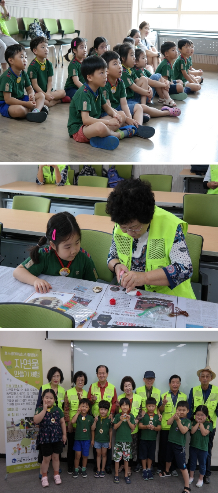 2019년 9월 4일(수) 10:30 선배시민자원봉사프로그램 인형극단 빛솔 이 '선암어린이집' 친구들과 복지관 관원을 대상으로 '유괴예방인형극 - 빨간모자야! 따라가면안돼' 를 선보였습니다. 그리고 11:00부터 복지관 3층 배움터2교실에서 호수생태해설사진촬영봉사 어르신들과 함께 자연물 만들기'게모형 만들기'를 실시하여 즐거운 시간을 가졌습니다.