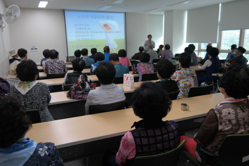 2019년 8월 29일(목) 복지관 어르신 57명을 대상으로 3층 배움터2 강의실에서 건강강좌를 실시하였습니다. 이번 건강강좌는 '울산 약사회'와 연계하여 '약물 오남용 교육 및 올바른 약 사용 방법'에 대해 '의약품 안전 사용 교육단 박경은 약사'의 강의로 진행되었습니다. 부작용 없는 적절한 약물 복용으로 건강한 노후 생활에 도움이 되었으면 좋겠습니다.