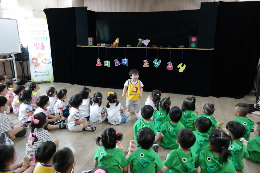 2019년 7월 24일(수) 10:30 선배시민자원봉사프로그램 인형극단 빛솔 이 '남구연합(마미품, 푸른솔영재, 아이자람, 아이꿈, 토브, 기쁨두배행복한 어린이집)어린이집' 친구들과 복지관 관원을 대상으로 '교통안전예방인형극 - 요리조리 조심조심' 를 선보였습니다. 앞으로도 문화 복지 향상과 세대통합을 위해 지역사회 어린이집과 사회복지시설에 인형극 재능기부 공연 봉사활동을 펼치는 '빛솔'의 활약을 기대합니다.
