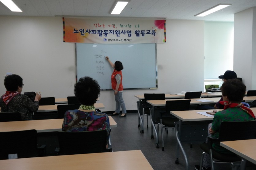 이날은 참여어르신들에게 사회서비스형 직무에 대한 이해, 재가노인복지시설의 이해교육, 돌발상황 대처방법, 장애시설 및 대상자이해교육등 활동능력 증진 및 활동에 대한 이해력을 돕고자 직무교육을 실시하였습니다.