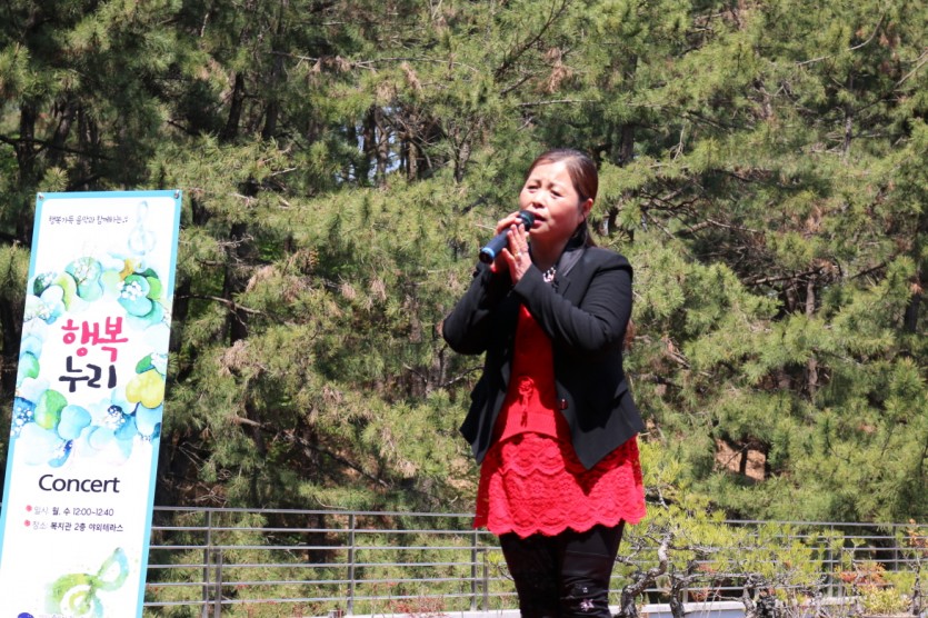 4/8(월) 따뜻한 봄 햇살을 맞으며 선암호수노인복지관 2층 야외테라스 무대에서 행복누리 콘서트가 열렸습니다.