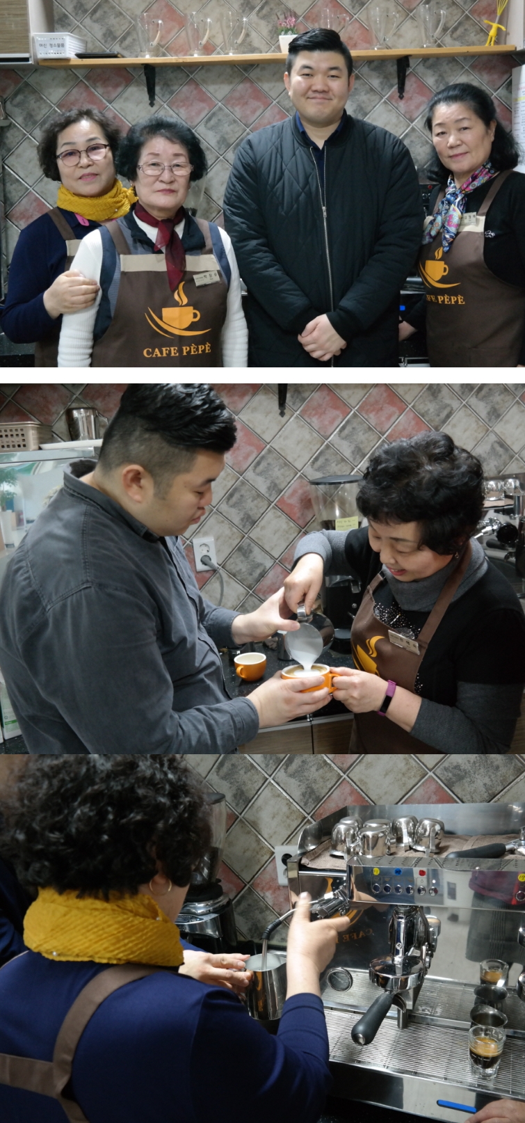 이번 교육은 1기 2/19~21, 2기 2/26~28 총6명의 어르신이 참여하여 커피기초이론& 기계설명, 에스프레소 추출, 스팀밀크 연습, 카페라떼 만들기 등 카페에서 봉사하면서 알아야 하는 기초교육을 진행하였습니다.
