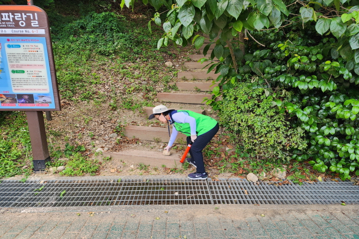 2024.06.19(수) 봉사활동에는 주차 표시대 정리, 등산로 초입에 흩어진 돌멩이를 정리하며