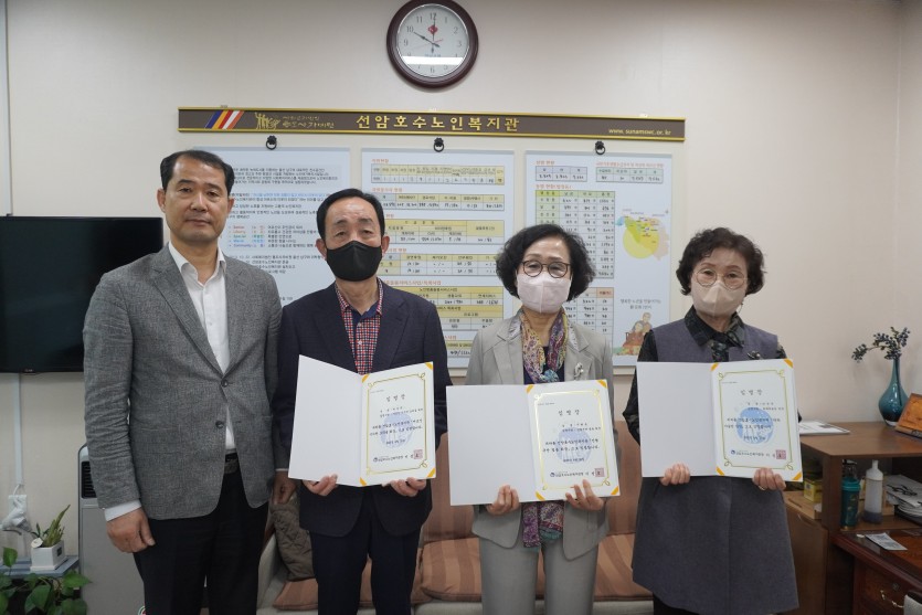 2023.04.26.(수) 10:00 관장실에서 '어르신 기자단 소리울, 인형극단 빛솔, 라라마술단' 대표 어르신에게