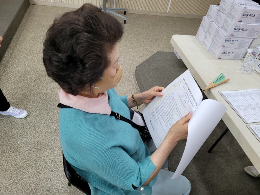이날 간담회에서는 비대면 진행으로 유인물을 배부하여 사업단별 활동안내 및 유의사항을 전달하였고, 그리고 다과를 구입하여 개별적으로 만남을 가져 지급 및 배부하였습니다. 오미크론감염병으로 여전히 확진자가 나타나고 있어 모든 참여자 어르신들에게 마스크 착용 및 손소독을 하여 건강한 간담회를 실시하였습니다.