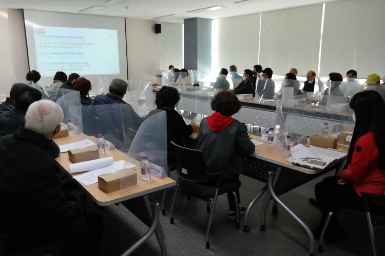 2021.11.22.(월) 15:00 본 복지관 3층 배움터2에서 평생교육프로그램의 실장단과 프로그램 운영 전반에 대한 정보를 공유하고 프로그램 질적 향상을 위한 실장단 간담회를 실시했습니다.