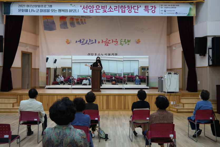 2021.09.03.(금) 10:00 복지관 1층 대강당에서 2021 어르신문화프로그램 ‘선암은빛소리합창단’ 특강을 실시했습니다.