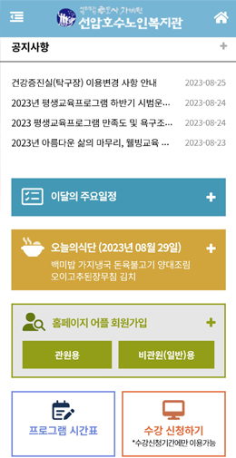 | 평생교육프로그램 추첨제 | · 상/하반기 1회 실시(1학기 6개월 수강) · 평생교육프로그램 중 2개 과목 신청 · 당첨된 프로그램에 한해서 수강료 납부 후 수강가능(1과목당 3만원 현금 납부) |